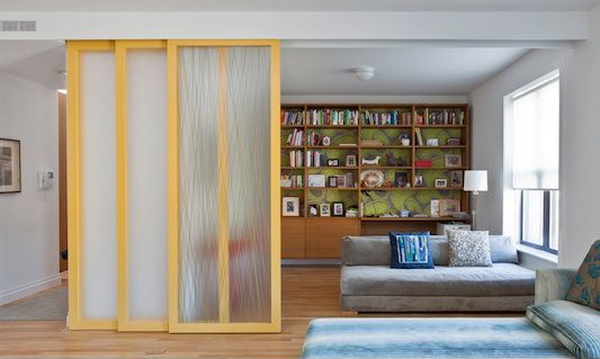△將小戶型的客廳用滑門(mén)隔斷,這樣當(dāng)朋友來(lái)時(shí),就可以兼作客臥了。