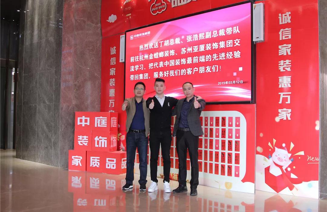 2019年3月12日,集團總裁丁胡、副總裁張浩熙帶隊前往杭州金螳螂裝飾、蘇州亞廈裝飾集團交流學習。
