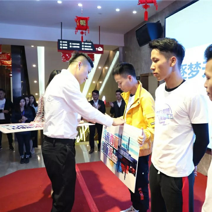 ▲丁胡總裁講話歡送出國游團隊
