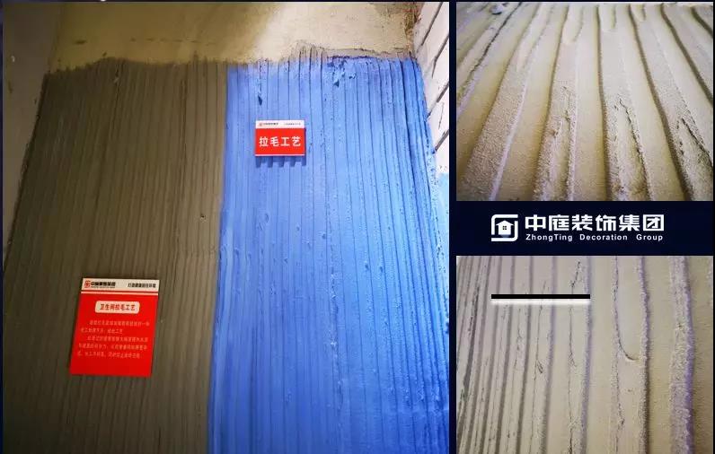 拉毛工藝:墻面拉毛是增加墻面粗糙度的一種施工處理方法,經(jīng)此工藝處理過的墻面能夠大幅度提升水泥與墻面的附著力,從而使墻磚貼得更牢固,長(zhǎng)久不脫落,同時(shí)防止瓷磚空鼓。