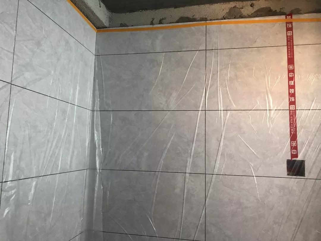 ▲每個(gè)區(qū)域鋪貼完畢后必須用薄膜封閉,并關(guān)閉貼磚區(qū)域的門窗,防止風(fēng)干過(guò)快。