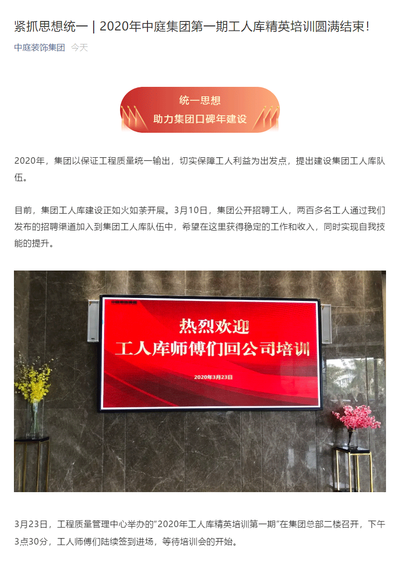 緊抓思想統一 | 2020年中庭集團第一期工人庫精英培訓圓滿結束!