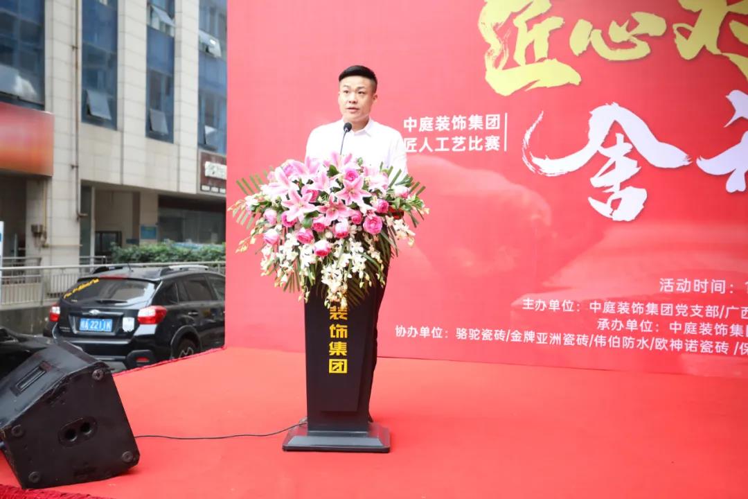 11月15日上午,由集團(tuán)黨支部主辦,質(zhì)管中心承辦,以“匠心對弈 舍我其誰”為主題的中庭裝飾集團(tuán)2020年匠人工藝比賽在集團(tuán)總部盛大召開,出席本次活動的領(lǐng)導(dǎo)和嘉賓有廣西建筑裝飾協(xié)會副秘書長兼施工委主任譚謙,中庭裝飾集團(tuán)總裁丁胡、集團(tuán)副總裁金洪路、集團(tuán)副總裁張浩熙、集團(tuán)副總裁兼工程質(zhì)量管理中心總經(jīng)理吳文戰(zhàn)、集團(tuán)總裁助理黃志輝等,共同見證本次工藝比賽啟動。