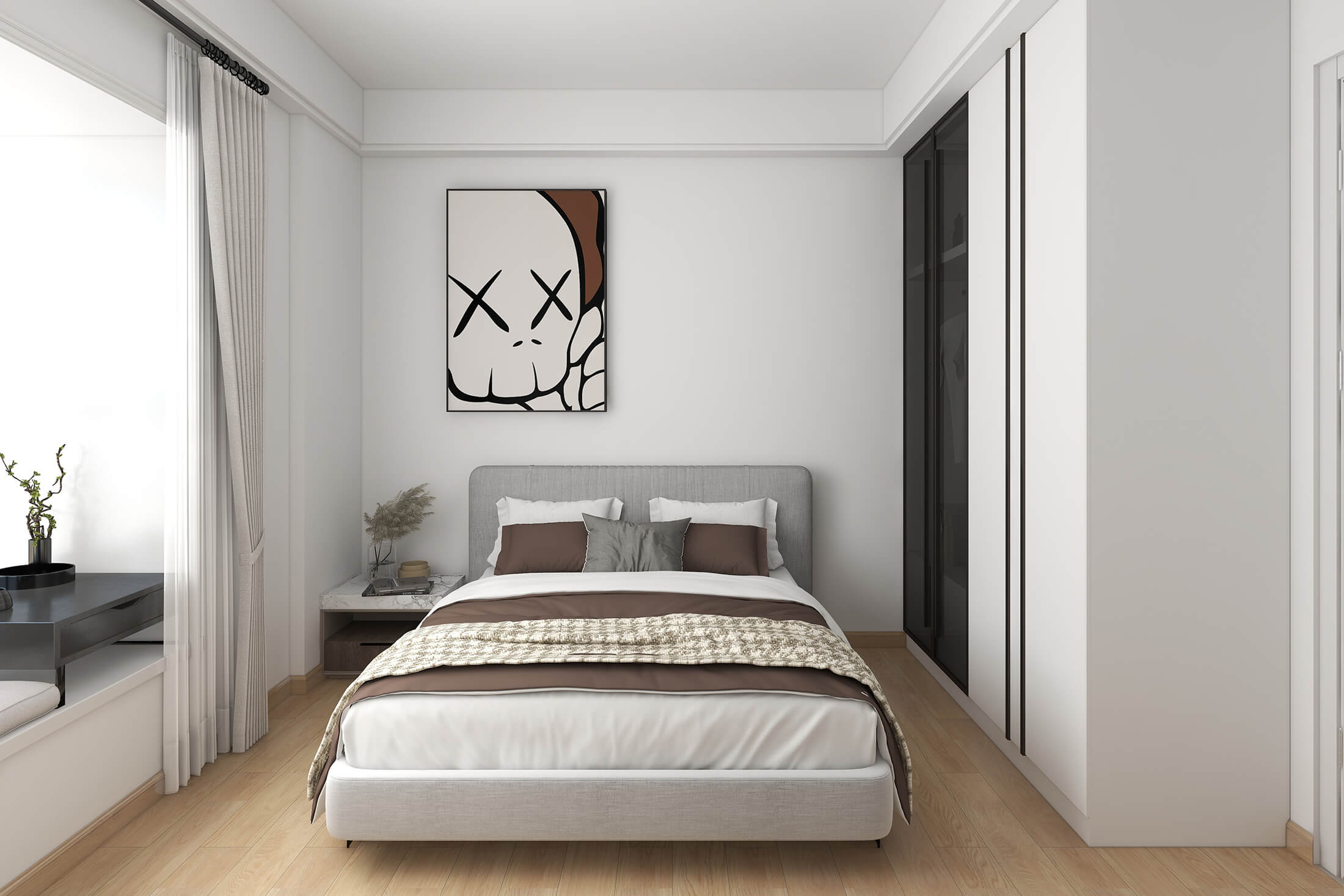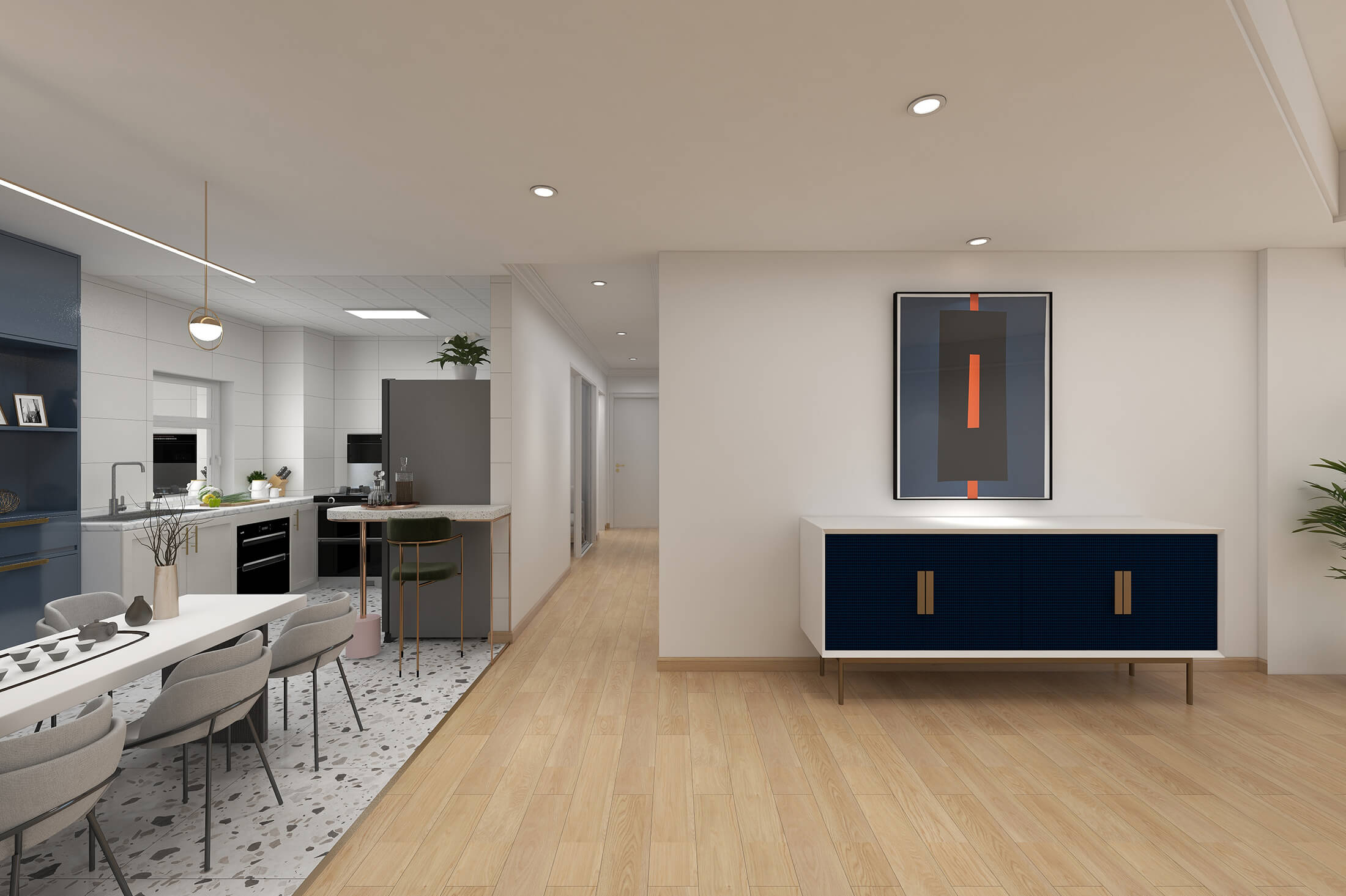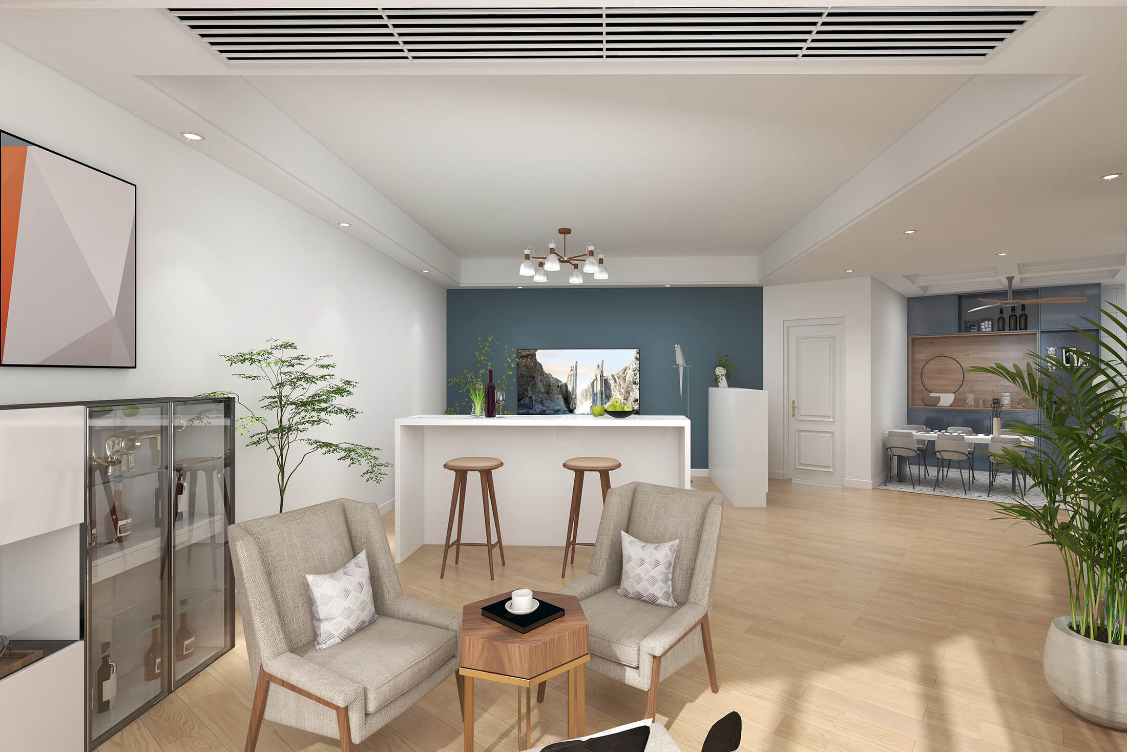 本案戶型為:4室2廳2衛(wèi),總面積119㎡。現(xiàn)代簡約風格,顧名思義,就是讓所有的細節(jié)看上去簡潔大氣,業(yè)主追求簡素淡雅之美,希望加入現(xiàn)代元素。設(shè)計師將材料、色彩、燈光及元素進行簡化,用簡潔的視覺效果營造出淡然清雅、寧靜超脫的氛圍。
