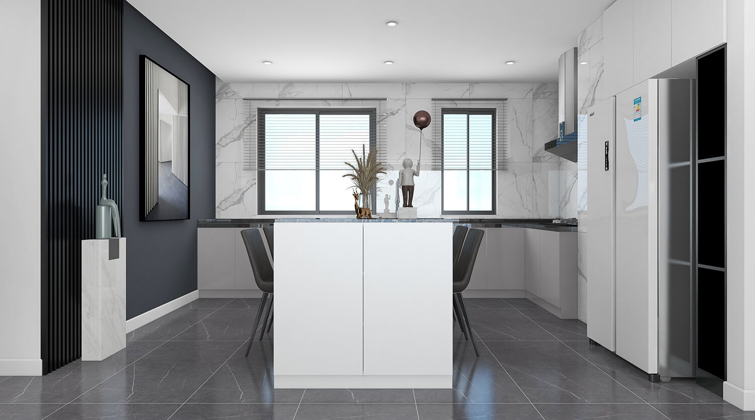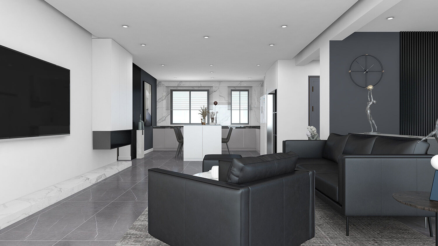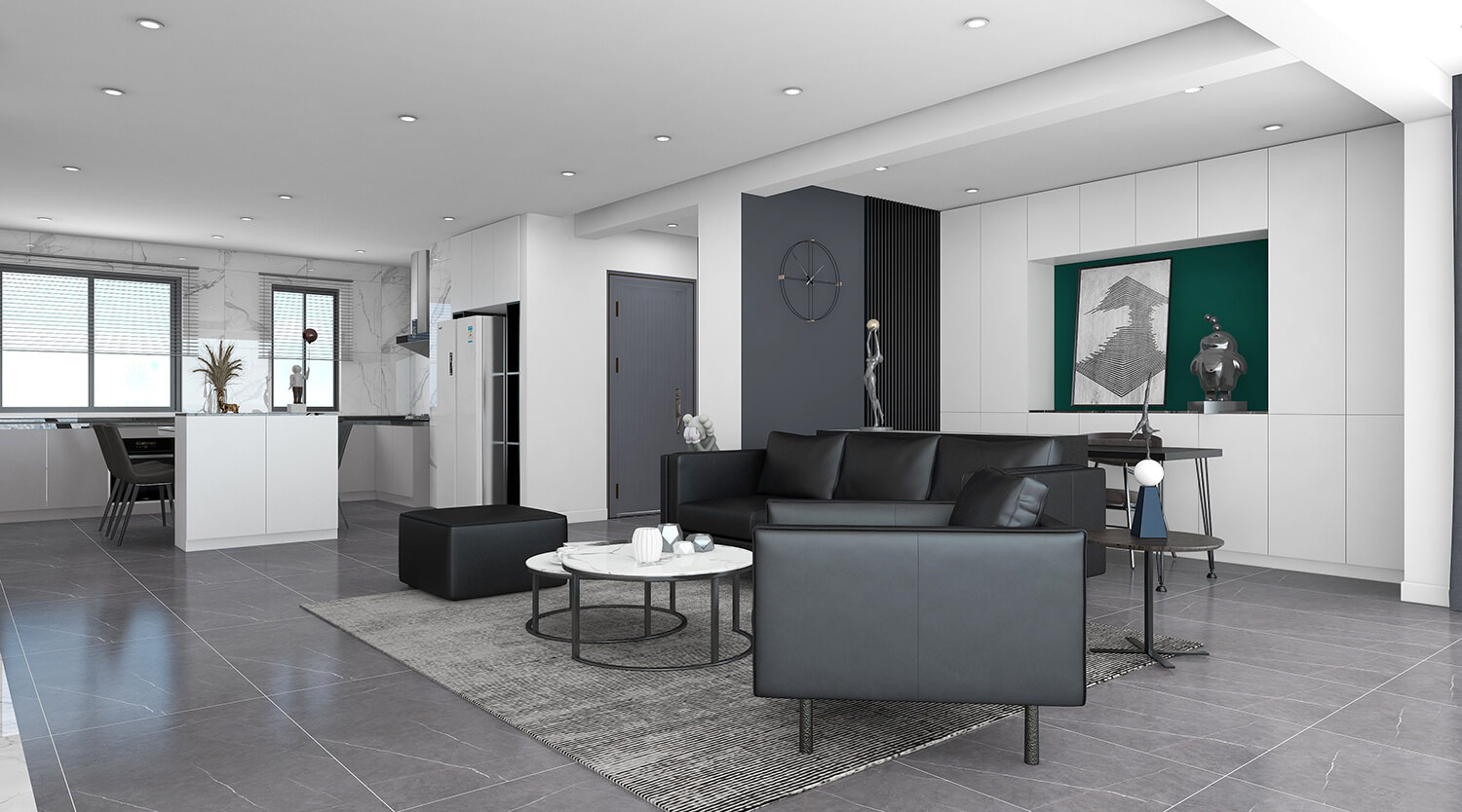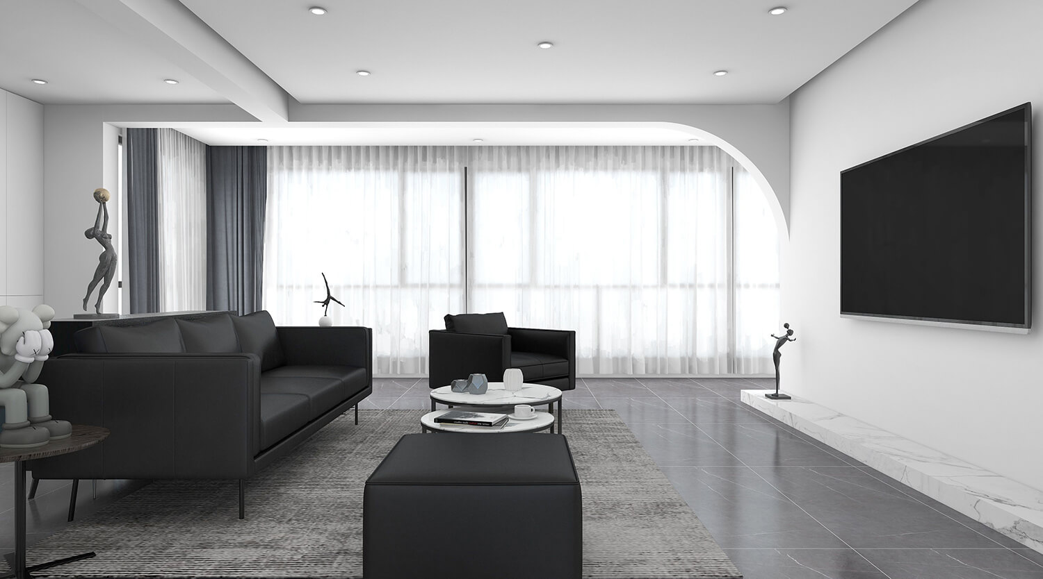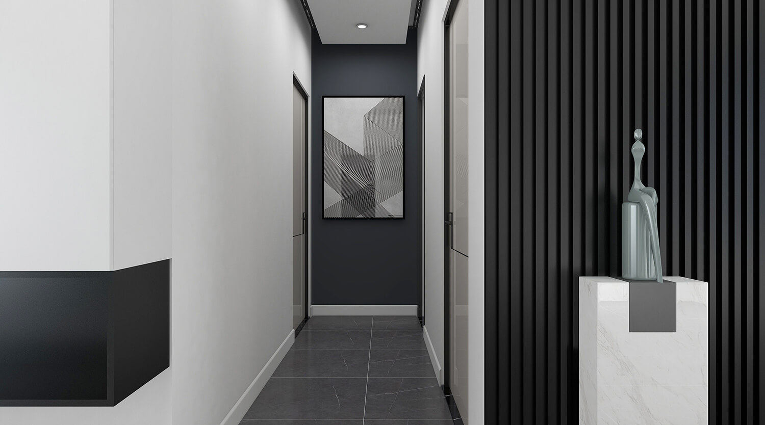 本案總面積為120㎡。設計師秉承簡潔、舒適的設計理念,整體以黑白灰為主,沒有多余的裝飾,線條簡單,室內空間大方。簡約風格的設計不是缺乏設計要素,而是一種更高層次的設計境界。在滿足功能需求的前提下,將空間、人及物品進行合理精致的組合,用最洗練的筆畫,描繪出最簡潔素雅的空間效果。