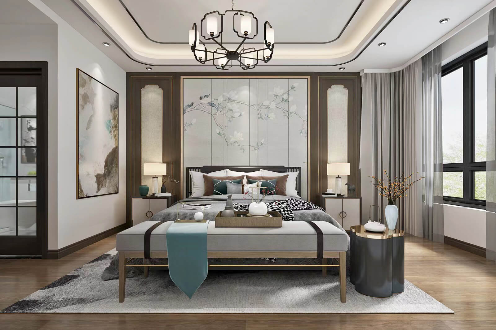 施工面積:150-180㎡| 設(shè)計(jì)風(fēng)格:新中式風(fēng)格