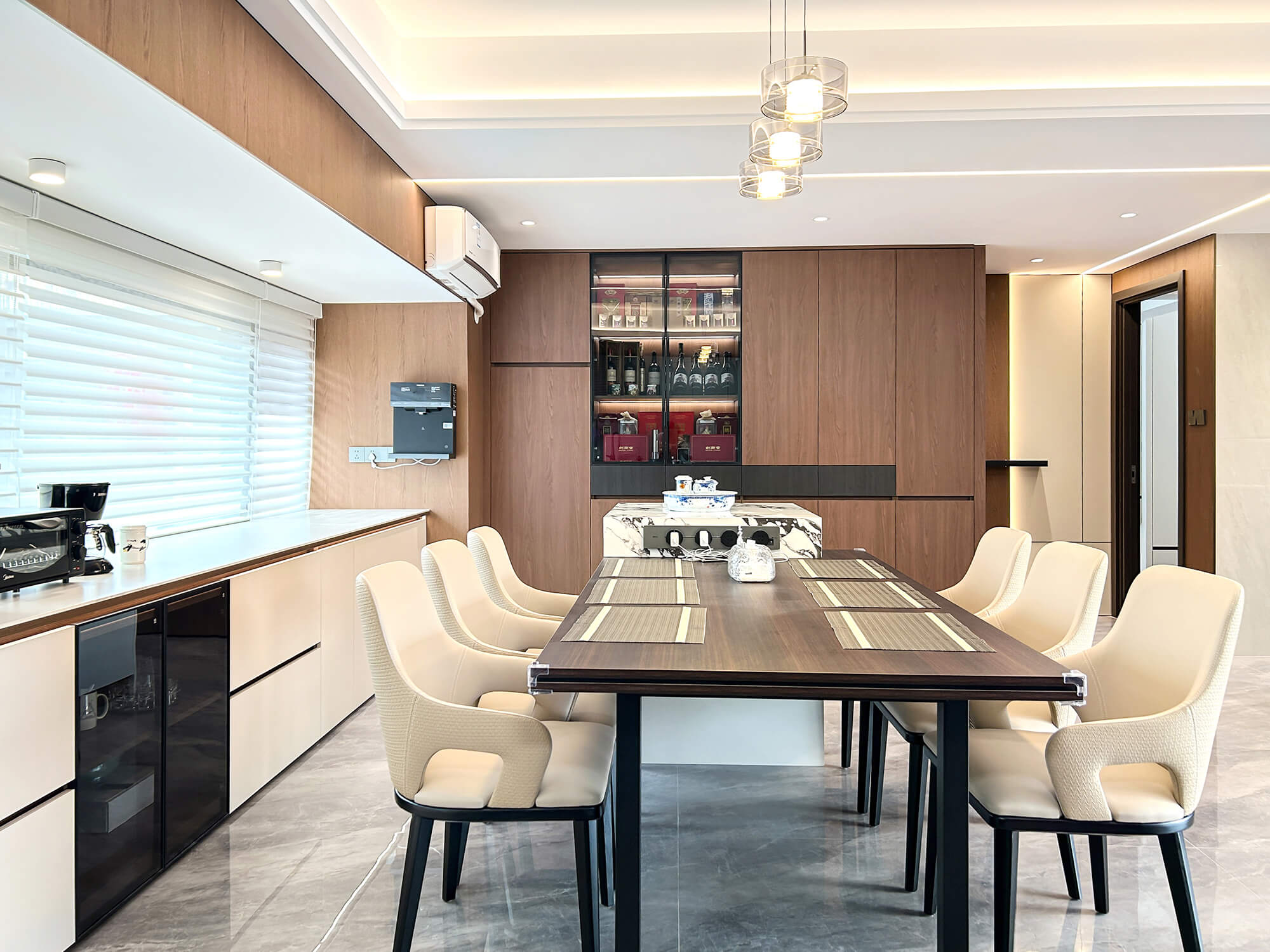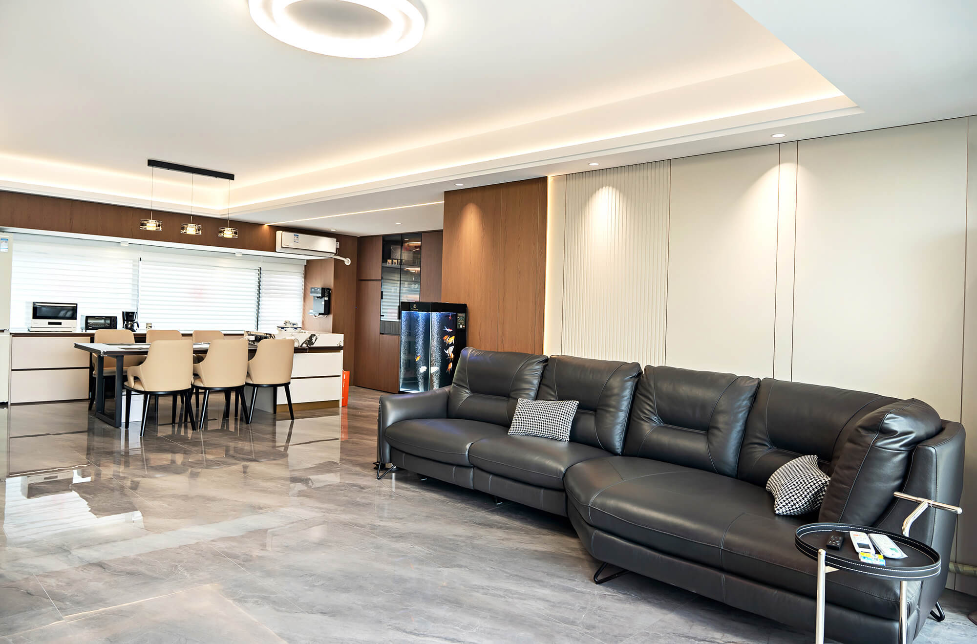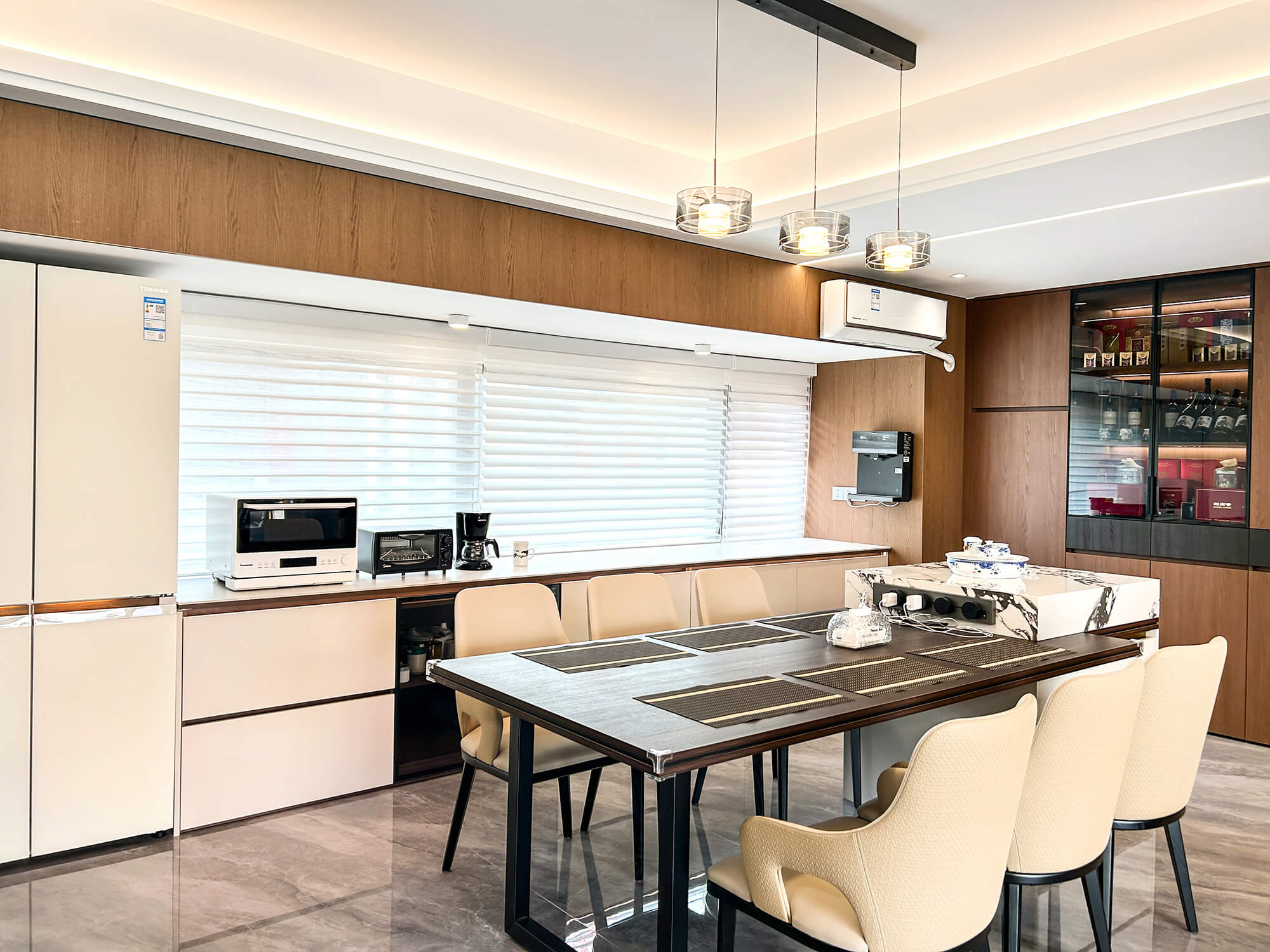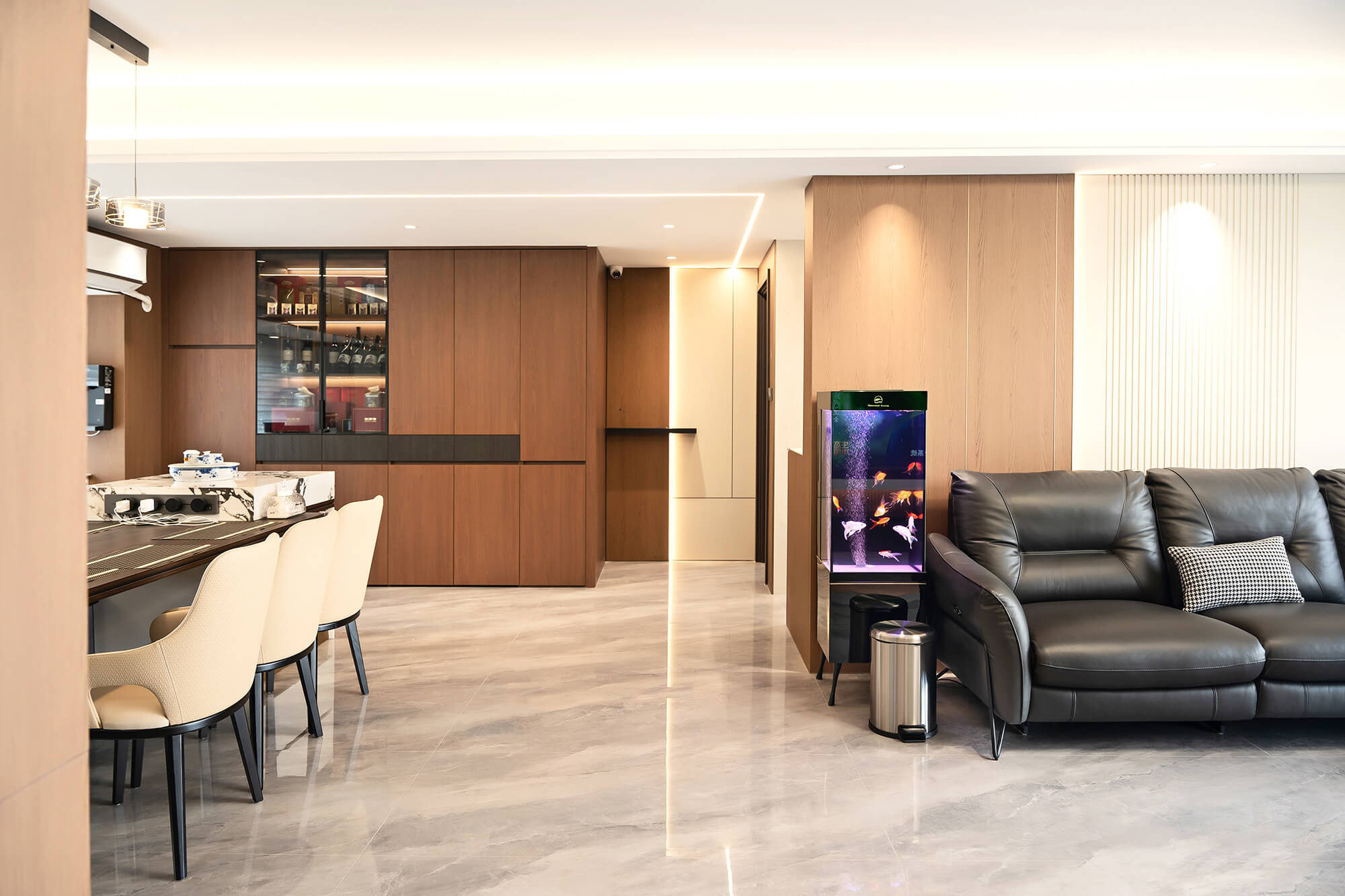 瀏覽量:316以 “少即是精” 為核心,用純粹線條與留白奠定基調(diào),搭配金屬巖板等質(zhì)感材質(zhì)作為點(diǎn)綴,拒絕冗余裝飾。色彩以低飽和度中性色為主,通過材質(zhì)碰撞凸顯高級(jí)感,營造克制而精致、兼具舒適與格調(diào)的空間氛圍。