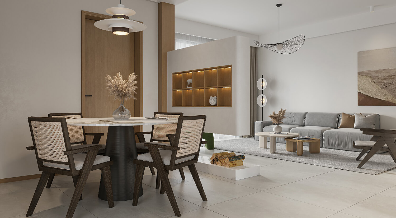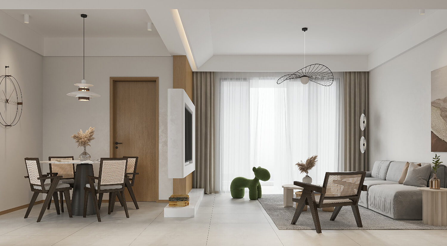瀏覽量:351本案屬于現(xiàn)代簡約風(fēng)格??蛷d采用無主燈設(shè)計(jì),更具簡約時(shí)尚感。客餐廳布局合理,客餐廳通鋪淺灰色瓷磚。使空間更加開闊明亮,增加空間美觀度。