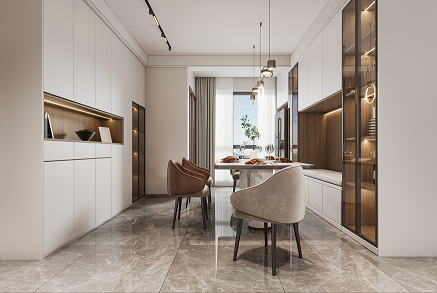 空間大面積描繪溫暖的棕灰色調,將優(yōu)雅而內(nèi)斂的視覺觀感散布于每一個細節(jié)之中。設計師嘗試以一種接近生活本質的視角觀察點滴日常的豐富性,將生活主場景面向自然景色,創(chuàng)造開闊明亮、安靜舒適的居住氛圍,讓每一位居住其中的人與自然對話,感受自在。