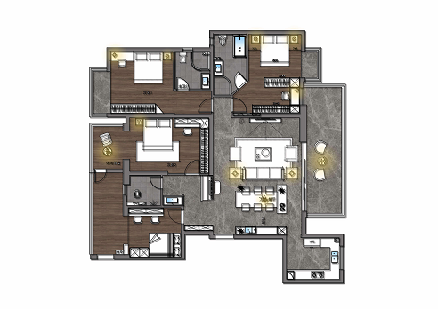 這個(gè)戶型,設(shè)計(jì)師當(dāng)時(shí)覺得大通廳及大陽(yáng)臺(tái)比較大,很舒服,但是弊端是房間都太小,臥室小而多,很多拐角顯得多余,怎么看都 不舒服。