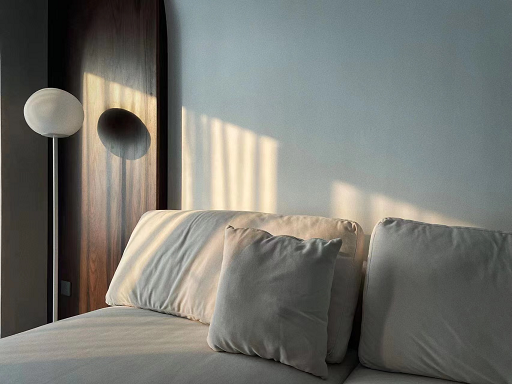淺灰色與原木色的基調(diào)在空間中暈染開來,營造出質(zhì)樸舒適的休憩空間。