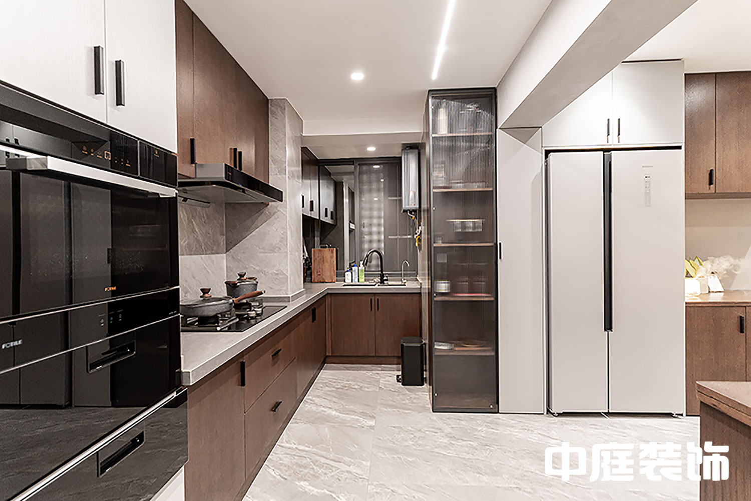 設(shè)計(jì)開放式廚房,西廚邊安置嵌入式冰箱,空間秩序的重組,讓餐廚區(qū)域更顯開闊,實(shí)木櫥柜的顏色更顯深韻,越看越有其中味道。長虹玻璃門式的酒柜參與中西廚之間,廚房舍棄以往的扣板吊頂,轉(zhuǎn)用石膏板吊頂,筒燈代替。在這里,總歸要卸下一身疲憊,與生活默然對(duì)話。